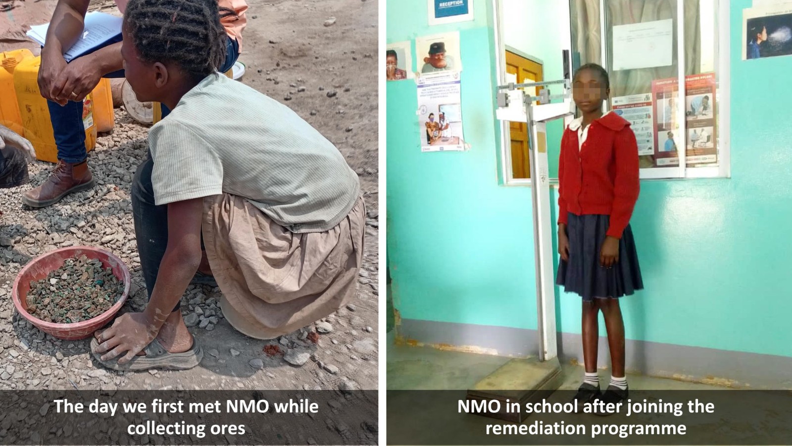 In one of the DRC’s oldest artisanal and small-scale mining (ASM) areas in the DRC, where poverty, informality and limited child protection systems leave children highly vulnerable, seven-year-old NMO began working in 2022, earning about $2 a day collecting minerals.